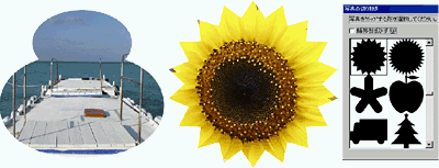写真の切り抜きは、 ギザギザやハートの形など47種類の形の中から選ぺます。