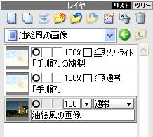 これを複製し、油絵風の画像の上にひとつは 通常合成、