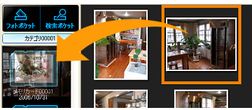 サムネイルを見ながら、必要な写真をピックアップして収納できる一時保管場所です。