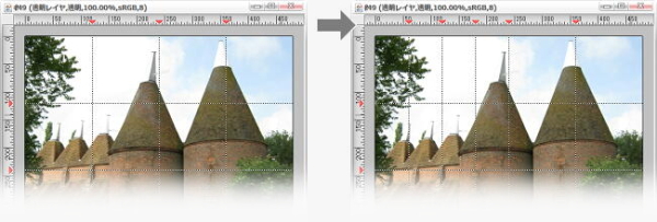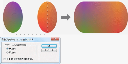 | 選択範囲の境界線上の色からグラデーションを発生させて塗りつぶします。 |