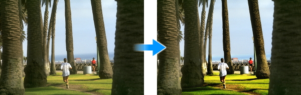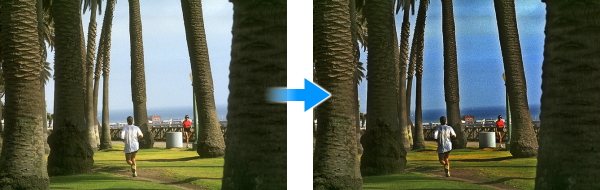 | 上の画像ではオーバーレイで合成したので、芝生や人物が鮮やかになりました。 |